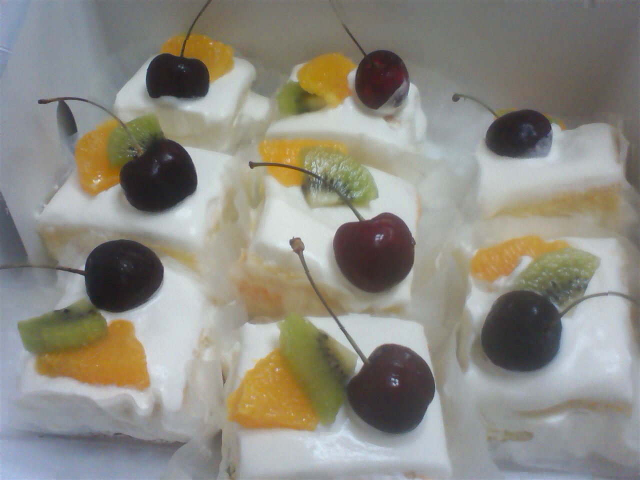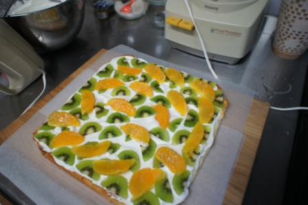 5センチ角にカットしてから、仕上げに果物をトッピングします。