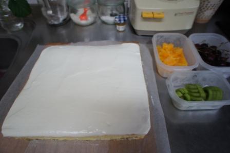 サンドイッチして、上に生クリームをナッペ。