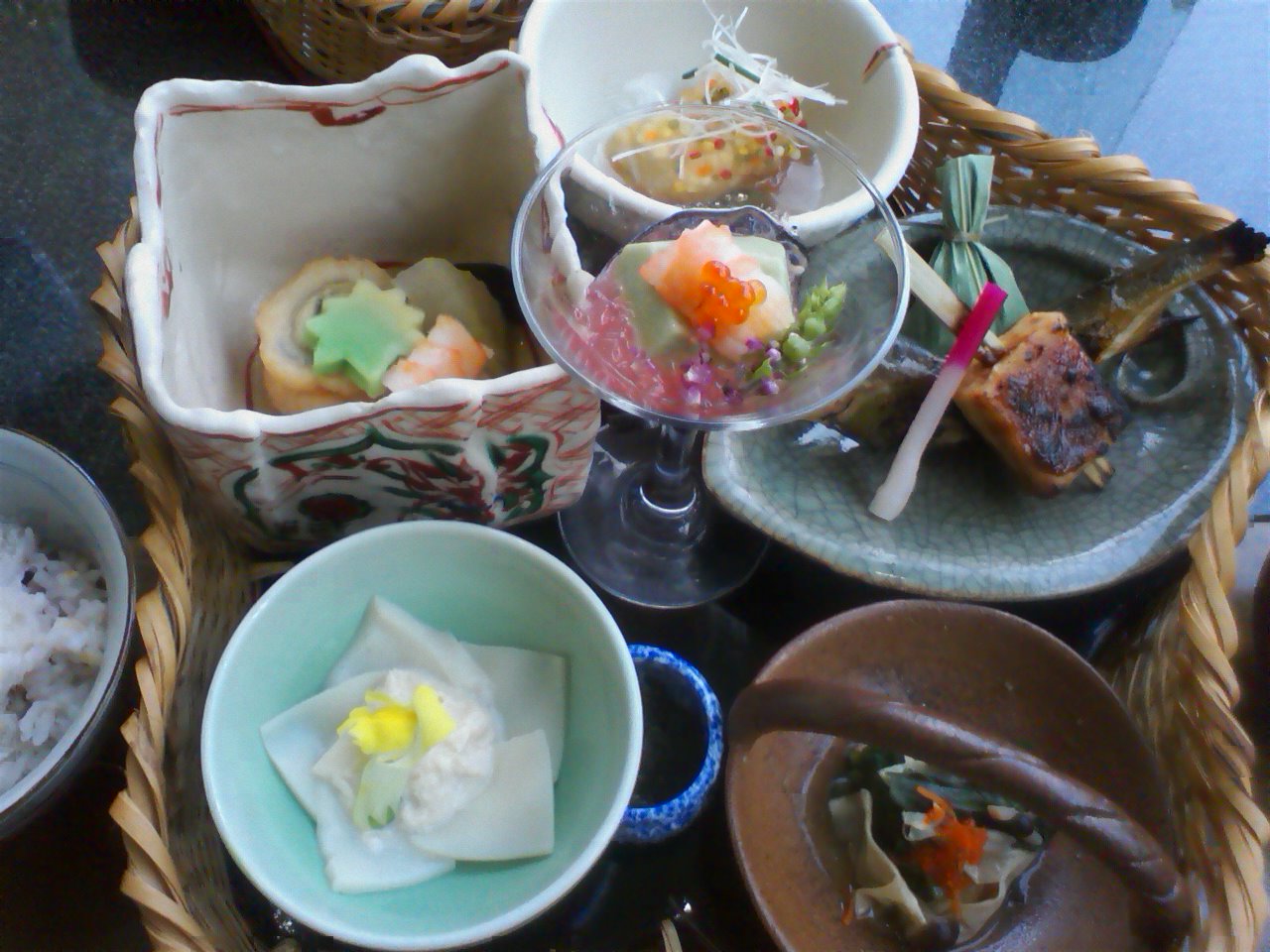 豆腐蒟蒻、豆腐田楽と鮎の蓼味噌焼き、牛蒡とにんじんの揚げ煮、
