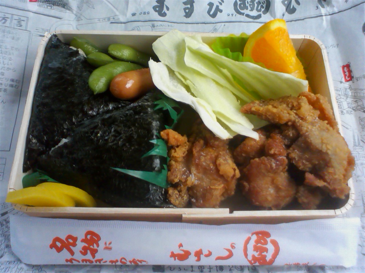 帰りに偶然見かけた むさし で持ち帰り唐揚げ弁当購入。