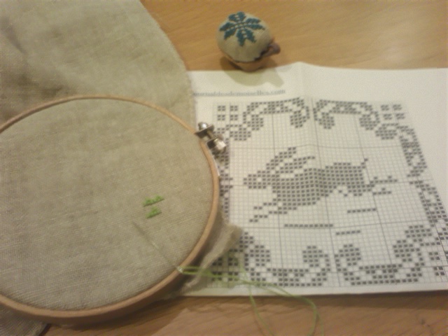 刺しては間違え、また刺しては間違え・・ やっとウサギの足ができた~。