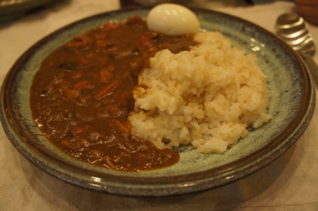 玄米入りご飯を炊いて、カレーライスを作ってくれていました。