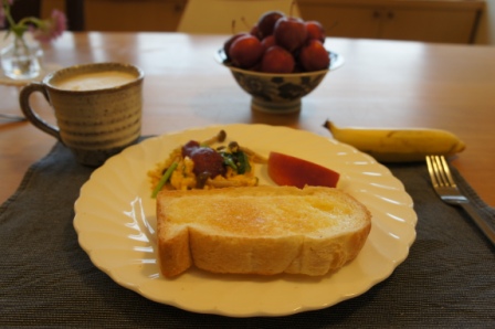 息子には焼いた食パンとカップスープとバナナだったケド、