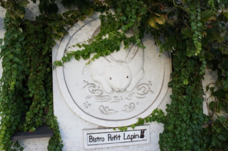 美観地区から少しはずれた所にあるビストロのうさぎのレリーフ