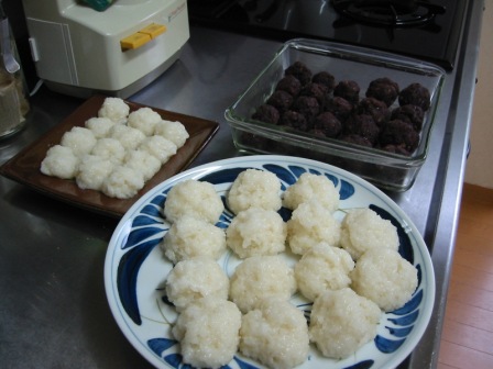 ぼたもちの2種類を作るので、あんこともち米それぞれ2種類大きさを用意。。