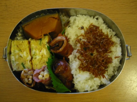 今朝は仕事のオット・ワタシ、試験中で給食なしの息子の3食分。
