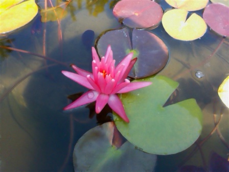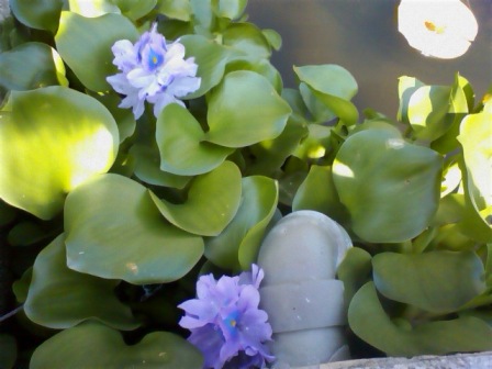霊園の池に睡蓮の花と布袋葵が咲いていた。