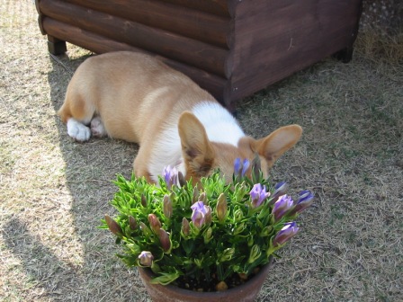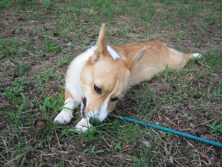 草むらの中から、プリン何かを発見して噛んで遊び始めた。。