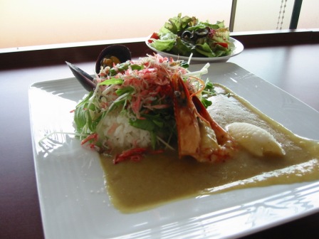 友人が注文したのは『激闘海軍カレー』、ワタシは『魚介の塩カレー(正式名称はもっと違ったかも。。)』。