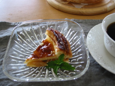 さっそくさっき買ったばかりのお皿にアップルパイを切り分け、庭のミントを摘んで、パンチの効いた
