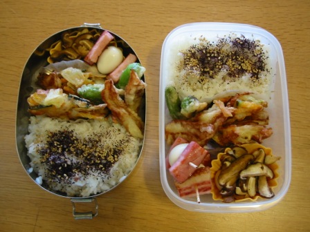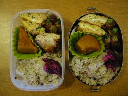 でも今朝は30分近く寝坊し、弁当はこんな有様。。