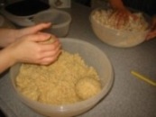 一晩水に浸けた大豆を圧力鍋でやわらかく煮て、バーミックスで潰した大豆に塩と麹を混ぜて、